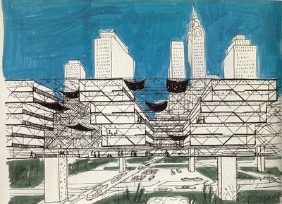 Moon River comenta en About Cities el trabajo del “visionary architect and artist” Yona Friedman y sus dibujos de la serie Spatial City (1958) [los enlaces e imágenes que aparecen aquí proceden del post de Moon River. Yona Friedman – Utopies Réalisables es un blog dedicado a la obra de este arquitecto húngaro].