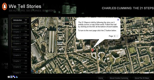 En el proyecto We Tell Stories de la editorial Penguin, 6 autores contemporáneos desarrollan durante 6 semanas 6 historias digitales de ficción inspiradas en 6 clásicos de la literatura. Una de ellas, The 21 Steps de Charles Cummings, está inspirada en The 39 Steps de John Buchan, está narrada sobre Google Maps. Es un modelo simple de narrativa hipertextual pero que ya pone de manifiesto las dificultades a la hora de acotar autorías y derechos. Es obvio que la obra de Cummings está inspirada en la de Buchan pero, además, sería irrealizable sin Google Maps. A pesar de esto, Penguin aplica unos criterios estrictos de protección de sus derechos legales en estas obras. Según aumente el número, y éxito, de este tipo de obras crecerán los deabtes y conflictos sobre derechos y remuneración asocida.