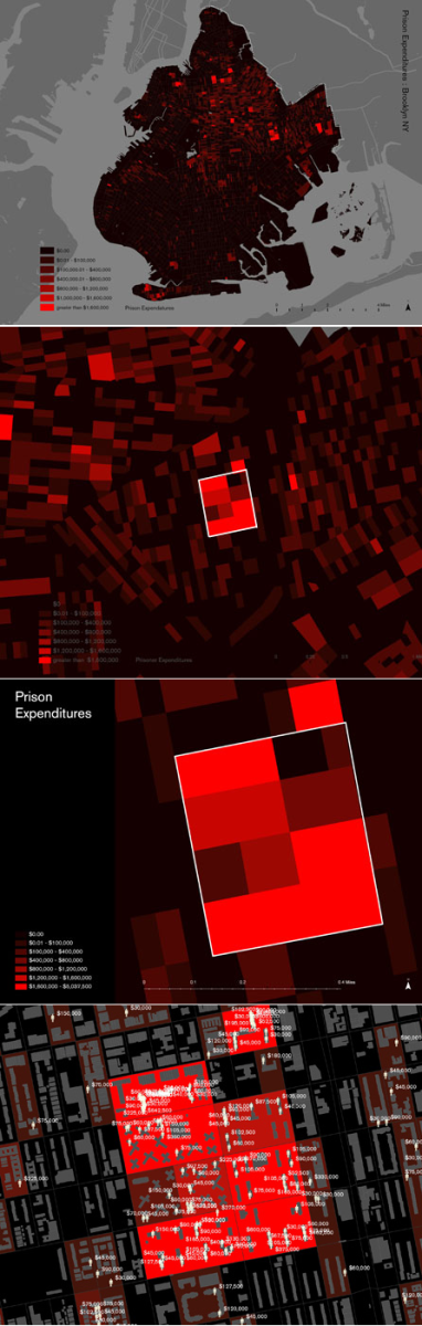 Los resultados que obtienen son muy claros y puede que obvios para algunos expertos, aunque nunca se habían podido ver de esa forma y no eran accesibles a la mayoría de la población. Por ejemplo, en el caso de Nueva York observan grandes concentraciones de gente que acaba en prisión (y, por tanto, de gasto pentenciario) en algunas zonas muy concretas de la ciudad, en especial en algunas manzanas de Brooklyn. Es evidente que este patrón espacial responde a la estratificación social y económica de la propia sociedad y de las ciudades.