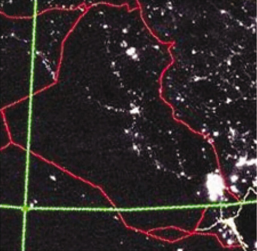 Estos autores emplearon como fuente de información el Operational Linescan System, formado por satélites meteorológicos del Departamento de Defensa norteamericano (Defense Meteorological Satellite Program, DMSP), que proporciona imágenes de iluminación nocturna a una escala global y con una resolución de 2.8 km (aquí puede consultarse una colección de imágenes nocturnas proporcionadas por la NASA). En concreto analizaron 4 imágenes entre Noviembre de 2003 y Diciembre de 2007 y que abarcan el periodo inicial de la invasión y las fases anterior y posterior al último cambio de estrategia.