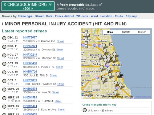 Adrian Holovaty fue uno de los pioneros de los mashups hiperlocales con su proyecto Chicago Crime Maps (designado por el New York Times como una de las mejores ideas de 2005) donde remezclaba las bases de datos públicas de la policía de Chicago sobre tipo, frecuencia y localización de crímenes en la ciudad con los mapas de Google Maps. Fue una de las primeras demostraciones del enorme valor de las bases de datos públicas cuando se utilizan inteligentemente generando visualizaciones que permiten a los ciudadanos obtener información detallada y precisa sobre su entorno urbano y comprender la dinámica socioeconómica de su entorno. Y por supuesto, este proceso se realiza “en Internet”, el entorno natural donde se gestiona la información hoy en día. Holovaty está trasladando ahora su experiencia a un nuevo proyecto y nueva compañía, EveryBlock, financiado por la Knight Foundation (y que el Sydney Morning Herald incluye entre las “10 cosas que cambiarán tu futuro”). EveryBlock será un sitio que agregará información y noticias locales de ciudades y promete que lo hará con una “gran profundidad”.