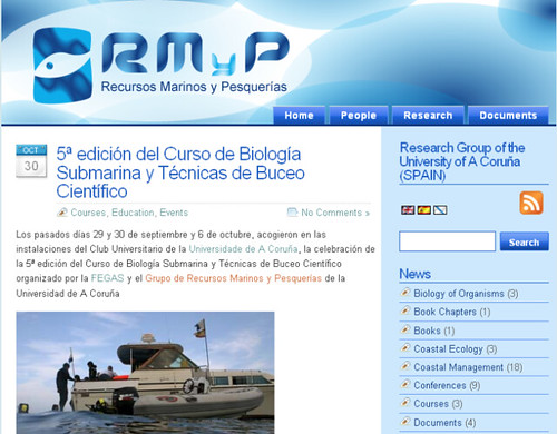 Nuestro grupo de investigación en la Universidad de A Coruña, Recursos Marinos y Pesquerías, estrenó hace unas semanas una nueva versión de su página web en el dominio http://www.recursosmarinos.net/.