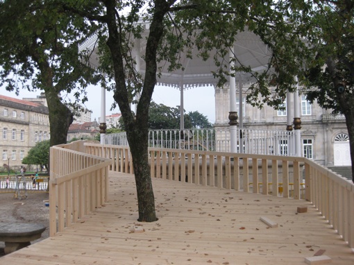 Es irónico que sea en Pontevedra donde se hagan unas jornadas sobre el uso del espacio público. El aumento de espacio para uso público que han generado las numerosas reformas urbanas ha quedado contrarrestado por la automática privatización del mismo por parte del sector hostelero. Calles y plazas desaparecen bajo las mesas y sillas de las terrazas (desde hace tiempo tengo ganas de hacer una ronda fotográfica, intentaré hacértelas llegar). Por otro lado, la gestión del espacio público por parte del Concello parece no tener un objetivo claro, ni mucho menos, más allá del de mostrar que los fondos se gastan en algo, en este caso, reformar calles. No existe planificación previa, las reformas se hacen a bandazos, sin sentido, y con una ejecución altamente deficiente (tanto la ejecución en si, como la elección de materiales, que en la mayoría de los casos nada tienen que ver con Pontevedra ni con Galicia) Es ahora, en el 2008 cuando vemos que se han olvidado de gestionar el transporte y la comunicación intraurbana, siendo tremendamente complicado circular por la ciudad en bicicleta (ya que no podemos hacerlo por la acera, con lo cual se nos equipara a los automóviles) e imposible en transporte público, que no existe. En su lugar sigue siendo el coche el medio por antonomasia en Pontevedra (después de la trájica desaparición de un medio tan lógico como era el trolebús, que por otro lado hoy en día sería muy cool, que es lo que más se busca desde el Concello) pero habiendo reducido la cantidad de infraestructuras para el mismo sin generar alternativas. Es decir, el medio de transporte en pontevedra es el coche, pero los nuevos parkings construidos están en el centro de las reformas urbanas, esto se traduce en una borágine de automóviles atravesando zonas que pretendían ser residenciales, pero no pueden serlo ya que conducen a zonas de aparcamiento privatizadas, no municipales, por lo tanto las zonas semipeatonales (término que se utiliza mucho desde el Concello y no alcanzo a comprender) pasan a ser enormes colas de coches tratando de llegar al parking para ir paseando a tomar unas cañas en las terrazas de la zona vieja. Todo tipo de forma de vida que salga de ahí, no tiene lugar para vivir en Pontevedra. Creo que con todo el dinero que se ha gastado en reformas se ha perdido una gran oportunidad.