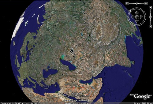 Contemplando Google Earth uno se da cuenta de que la supuesta superpoblación que aqueja al plantea no es más que un mito, y que la Tierra está en su mayor parte desierta … Los lugares poblados de la tierra representan una superficie mínima dentro de la inmensa roca en la que vivimos … He recorrido durante centenrares de kilómetros los desolados arrecifes del cuerno de Africa, sobre un mar de un azul terrible,. He sobrevolado el interminable mundo de montañas de Afganisthan. He recorrido marismas infinitas y lagos con miles de islas en Asia Central … somos apenas una leve mancha en la musculosa, vibrante superficie de nuestro inmenso planeta.